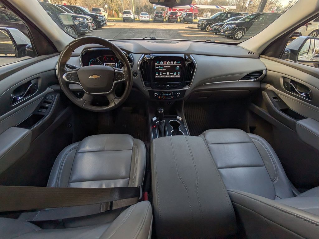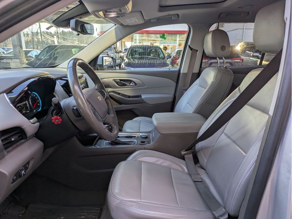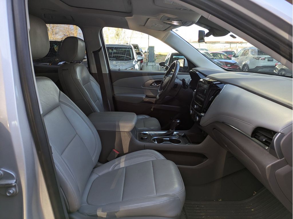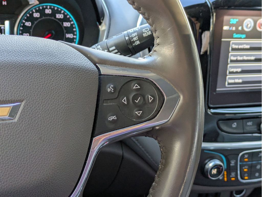 Start this vehicle from inside with remote start. Protect the Chevrolet Traverse from unwanted accidents with a cutting edge backup camera system. You'll never again be lost in a crowded city or a country region with the navigation system on it. This model offers Apple CarPlay for seamless connectivity. It features a high end BOSE stereo system. Bluetooth technology is built into the vehicle, keeping your hands on the steering wheel and your focus on the road. This vehicle has a clean CARFAX vehicle history report. The vehicle offers Android Auto for seamless smartphone integration. The leather seats in the vehicle are a must for buyers looking for comfort, durability, and style. Make room for more passengers, carry extra luggage or your favorite sports gear with the roof rack on this 1/2 ton suv. This vehicle has a V6, 3.6L high output engine. Load groceries and much more with ease into this 1/2 ton suv thanks to the power liftgate.