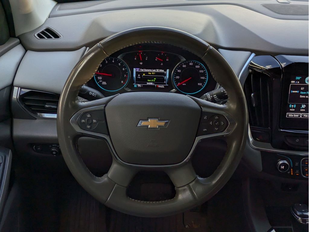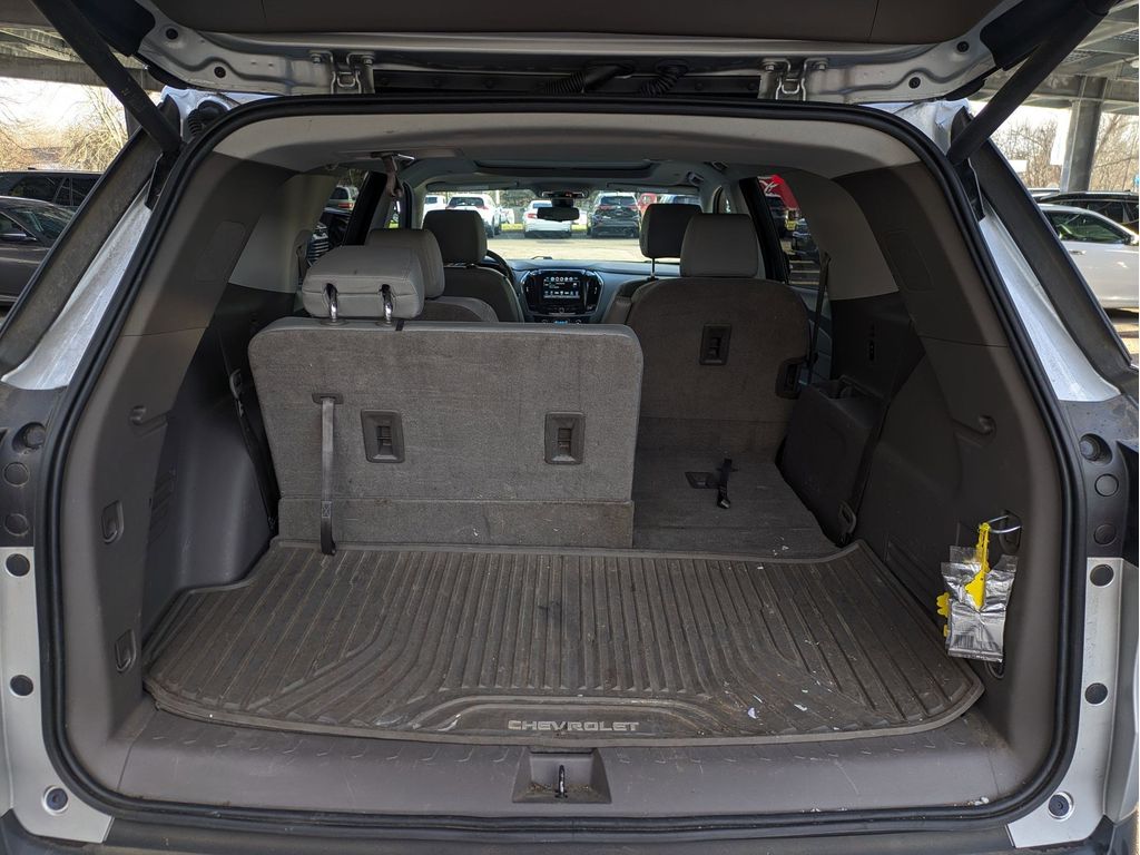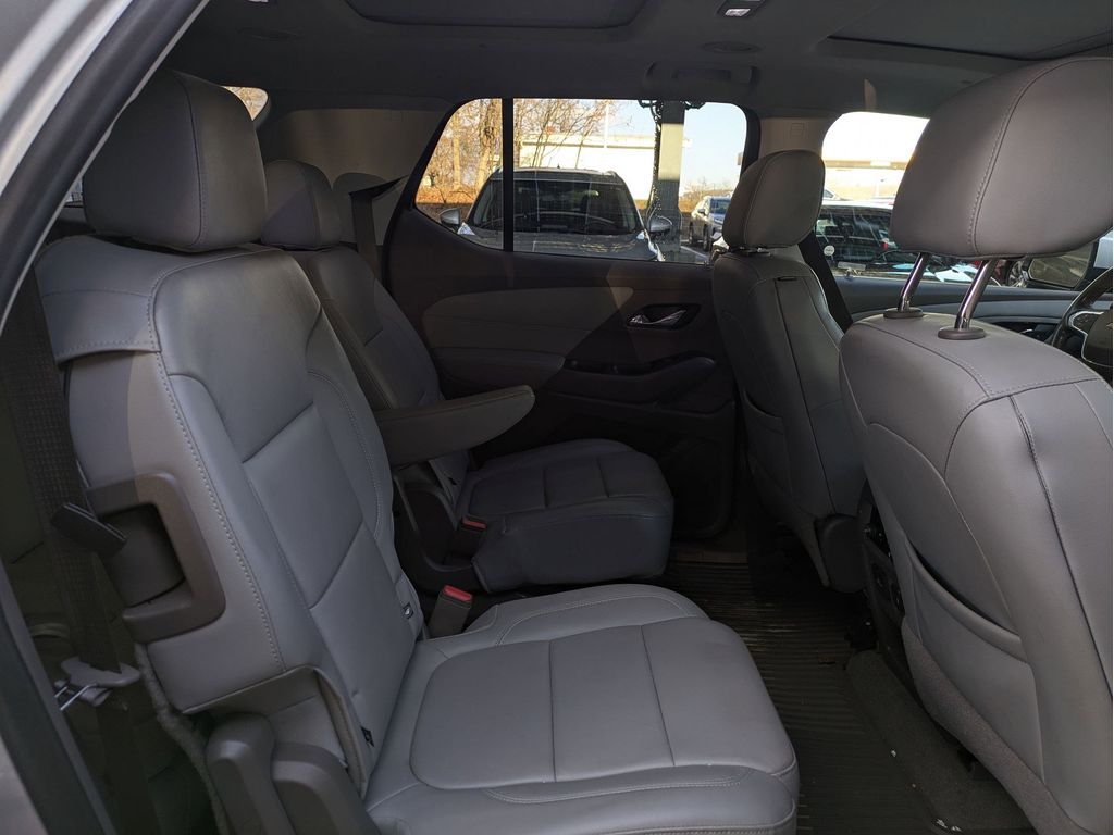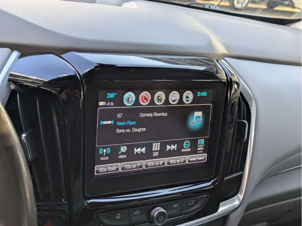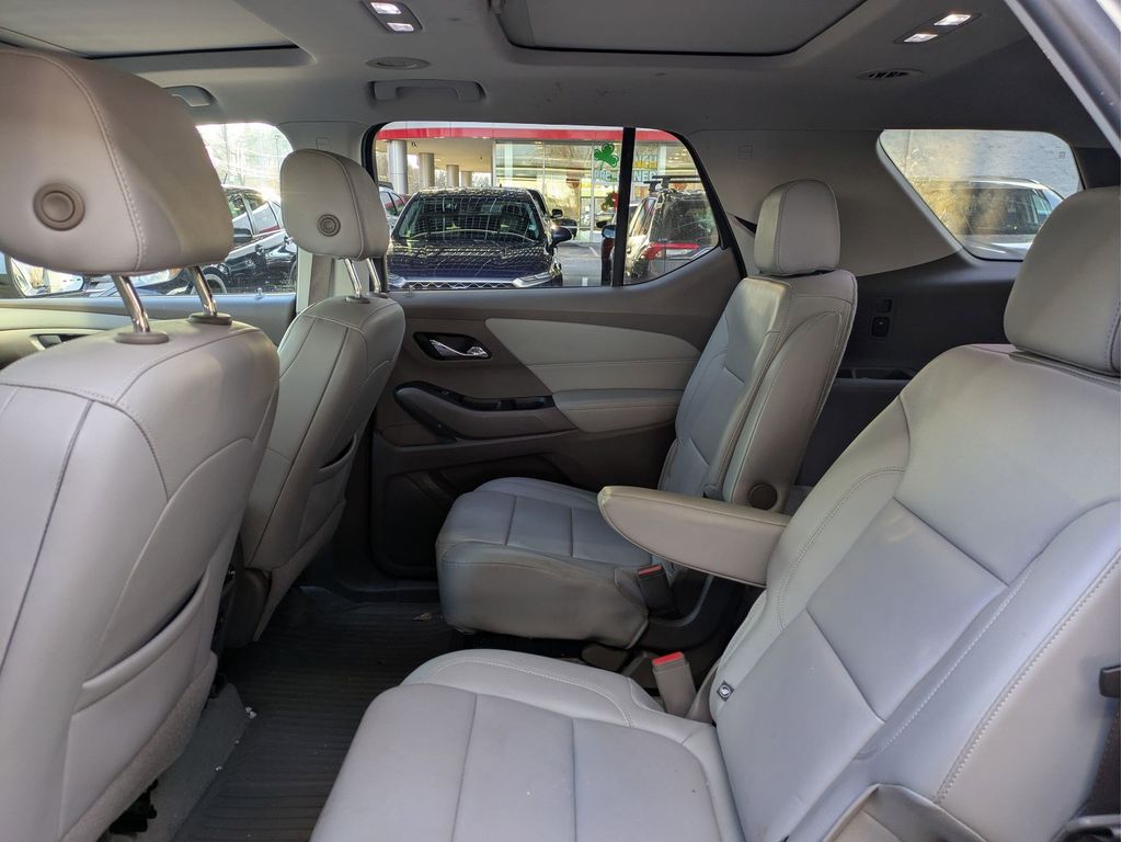 Start this vehicle from inside with remote start. Protect the Chevrolet Traverse from unwanted accidents with a cutting edge backup camera system. You'll never again be lost in a crowded city or a country region with the navigation system on it. This model offers Apple CarPlay for seamless connectivity. It features a high end BOSE stereo system. Bluetooth technology is built into the vehicle, keeping your hands on the steering wheel and your focus on the road. This vehicle has a clean CARFAX vehicle history report. The vehicle offers Android Auto for seamless smartphone integration. The leather seats in the vehicle are a must for buyers looking for comfort, durability, and style. Make room for more passengers, carry extra luggage or your favorite sports gear with the roof rack on this 1/2 ton suv. This vehicle has a V6, 3.6L high output engine. Load groceries and much more with ease into this 1/2 ton suv thanks to the power liftgate.